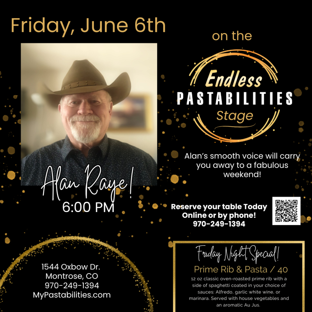 Alan is a great musician who lives right here in Montrose. His smooth voice and guitar sound amazing on everything from Elvis to Chris Stapleton! Don’t miss it!